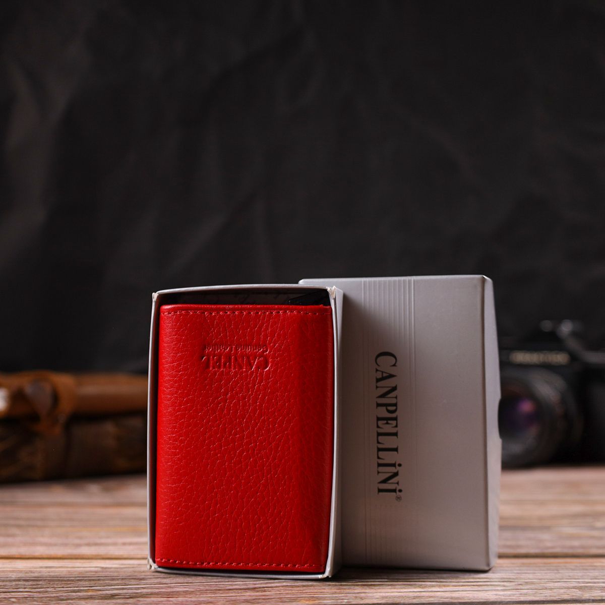 Женский картхолдер в три сборки с автоматическим механизмом из натуральной кожи флотарий Canpellini 21933 красный