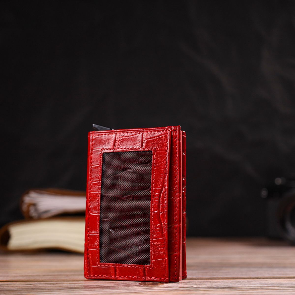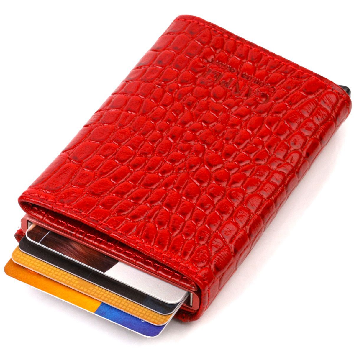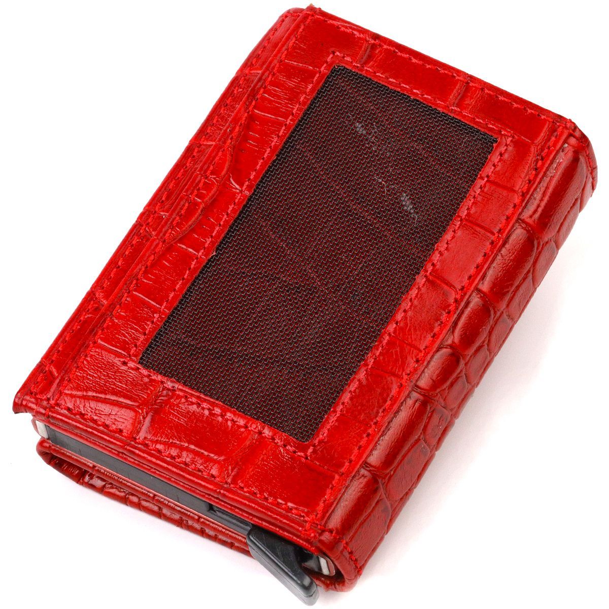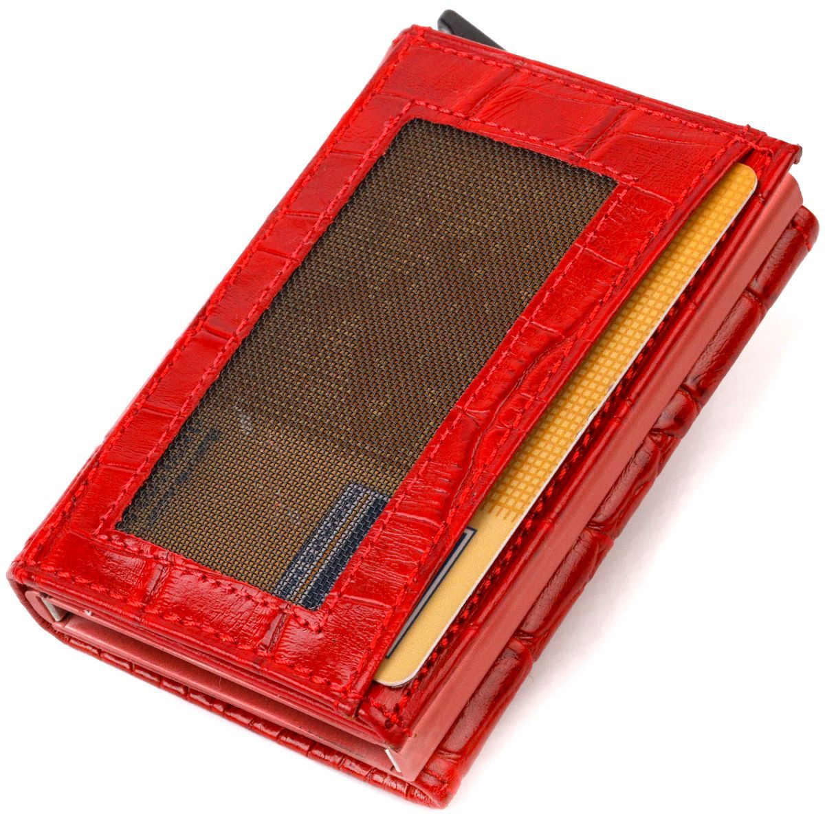 Женский картхолдер в три сборки с автоматическим механизмом из натуральной кожи с тиснением под крокодила Canpellini 21929 красный