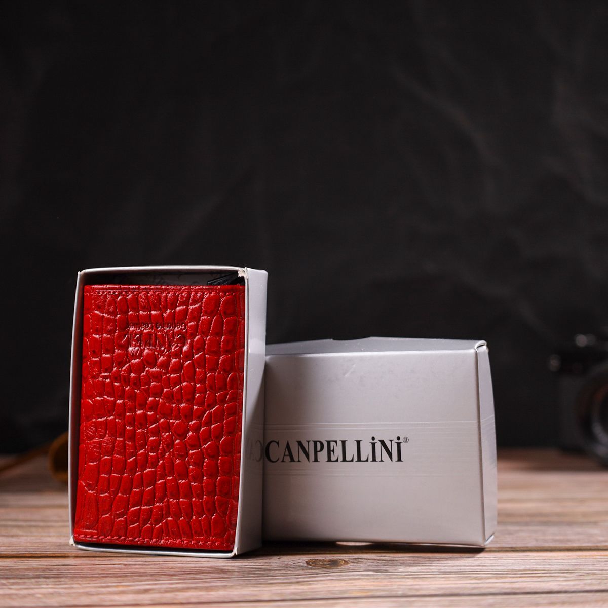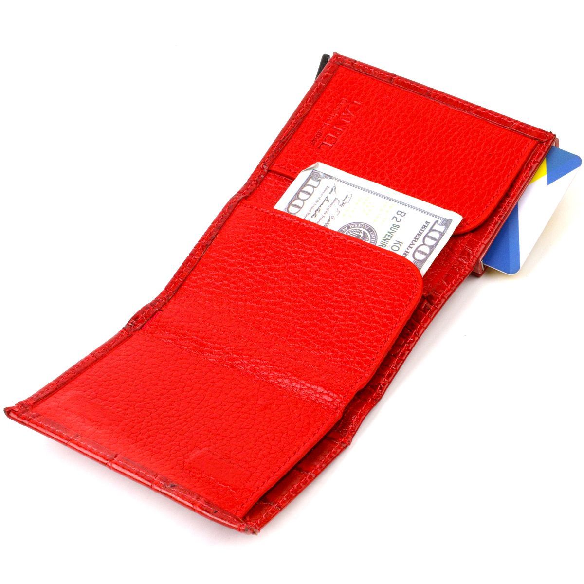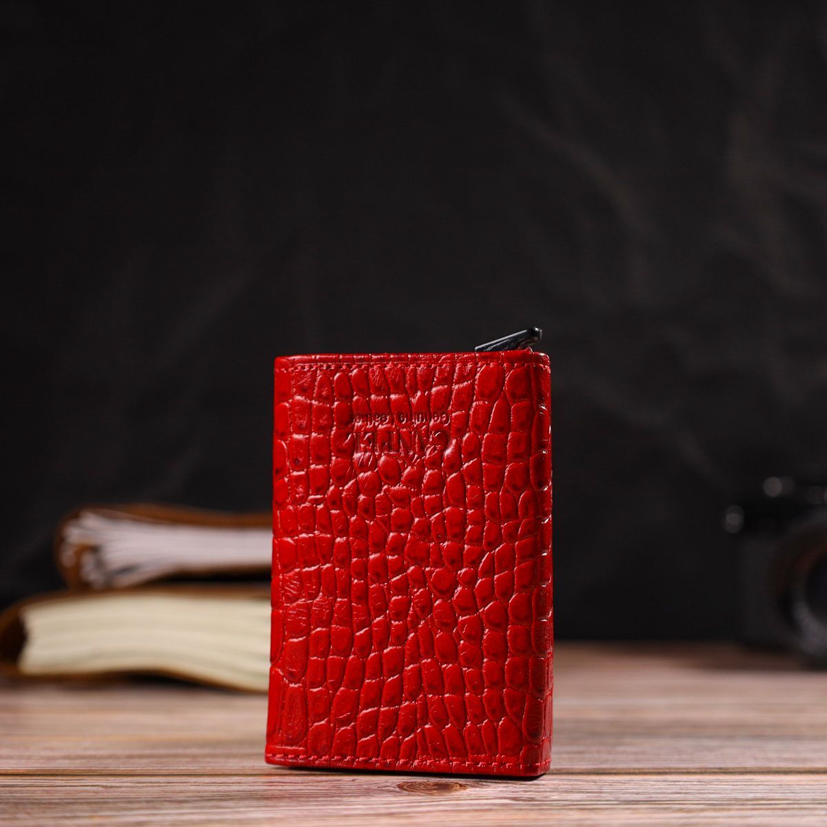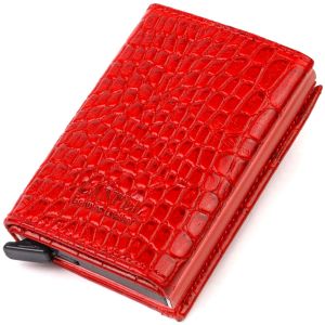 Женский картхолдер в три сборки с автоматическим механизмом из натуральной кожи с тиснением под крокодила Canpellini 21929 красный