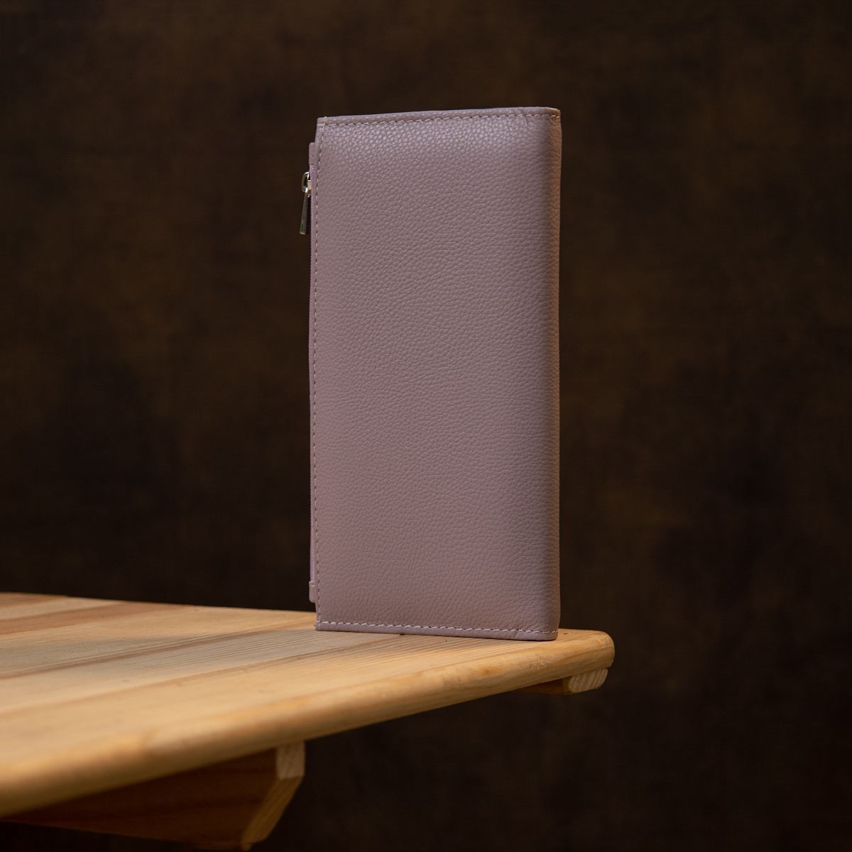 Всем, кто ищет красивый и функциональный женский кошелек благородного бледно-лилового цвета, необходимо обратить внимание на эту модель. Это кожаное изделие имеет достаточное количество отделений для купюр и карточек, а также монетницу на молнии на тыльной стороне, что очень удобно. Кошелек упакован в фирменную жесткую белую коробку, поэтому станет не только отличным приобретением для вас, но и хорошим подарком для близкого человека.