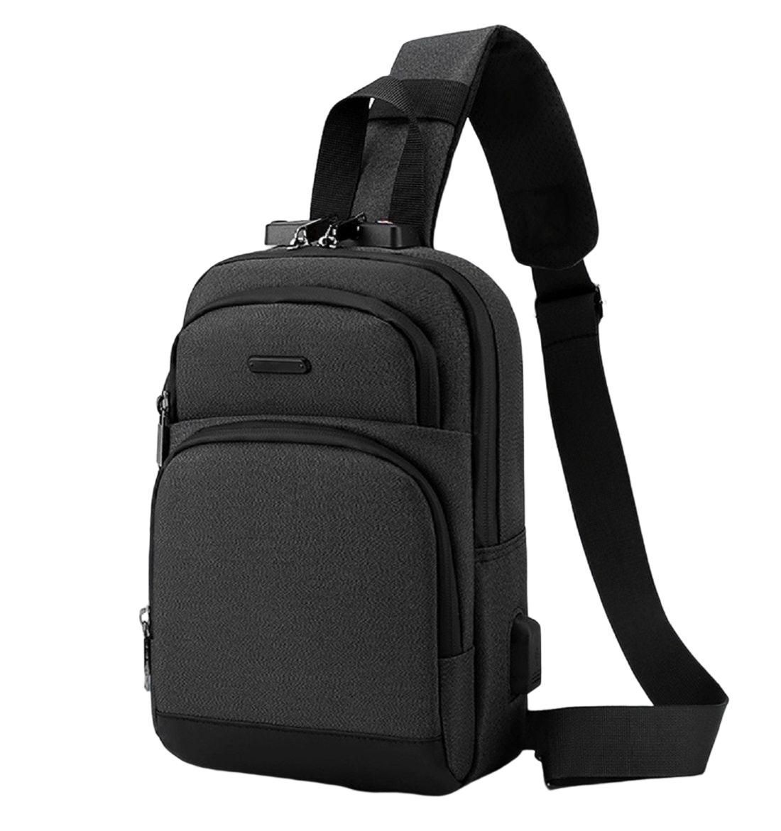 Чоловіча сумка слінг Confident ATN01-T-X1353A пошита із м'якого текстилю у чорному кольорі. Розміри: 28 x 19 x 10 см. У слінгу одне основне відділення на блискавці. Також усередині виробу є додаткові невеликі кишеньки для дрібних предметів, одна на змійці та друга кишеня-слот відкритого типу. З лицьового боку розміщені дві кишені на змійці різних розмірів, що дозволяє зручно розмістити всі дрібні речі. Спинка м'яка з «дихаючою» сіткою. Наплічний текстильний ремінь, регулюється по довжині, перестібається на зручну сторону за допомогою карабіну. Є коротка ручка. Особливістю даної моделі є USB роз'єм для комфортного заряду телефону. Також кодовий замок на основному відділі. Підкладка: текстиль. Колір чорний. Колір фурнітури: срібло.
