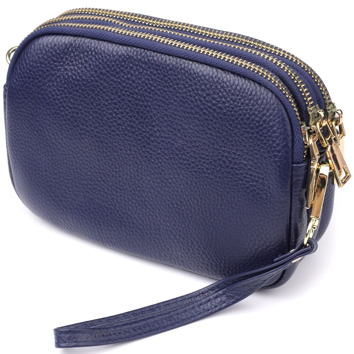 Зручна шкіряна сумка на три відділення для жінок Vintage 22892 синя