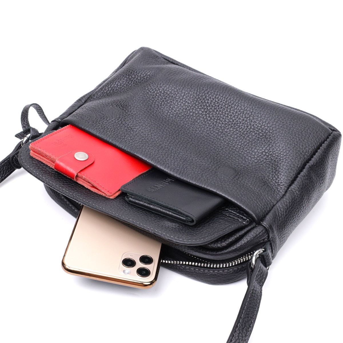 Удобная женская сумка кросс-боди из натуральной кожи Grande Pelle 11651 черная