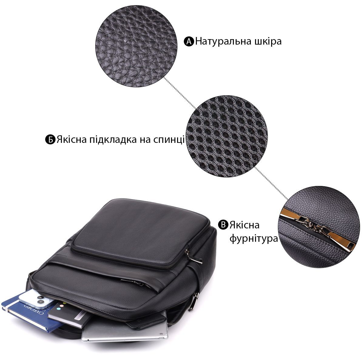 Зручний чоловічий рюкзак з натуральної шкіри Vintage 23052 чорний