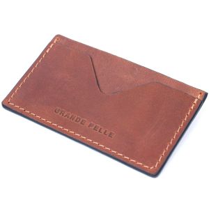 Стильный кожаный кард-кейс ручной работы из натуральной высококлассной кожи. На лицевой стороне изделие имеет тисненый логотип производителя Grande Pelle, а также прошит по краю ровной строкой под цвет изделия. Аксессуар состоит из двух отделений под карты. Благодаря компактным размерам аксессуара он отлично помещается в кошелек, карман или сумку любого размера. Отличный аксессуар для современного человека.