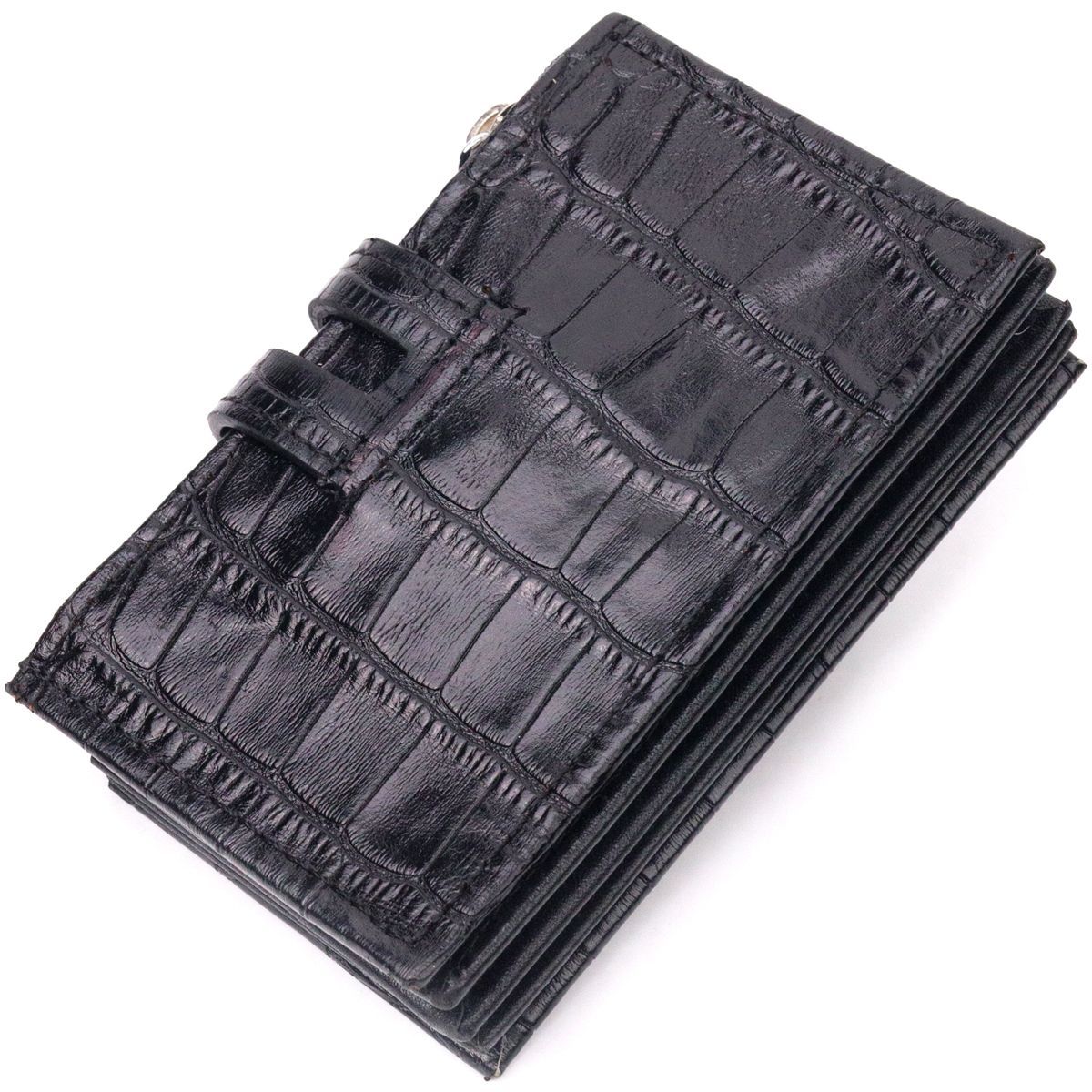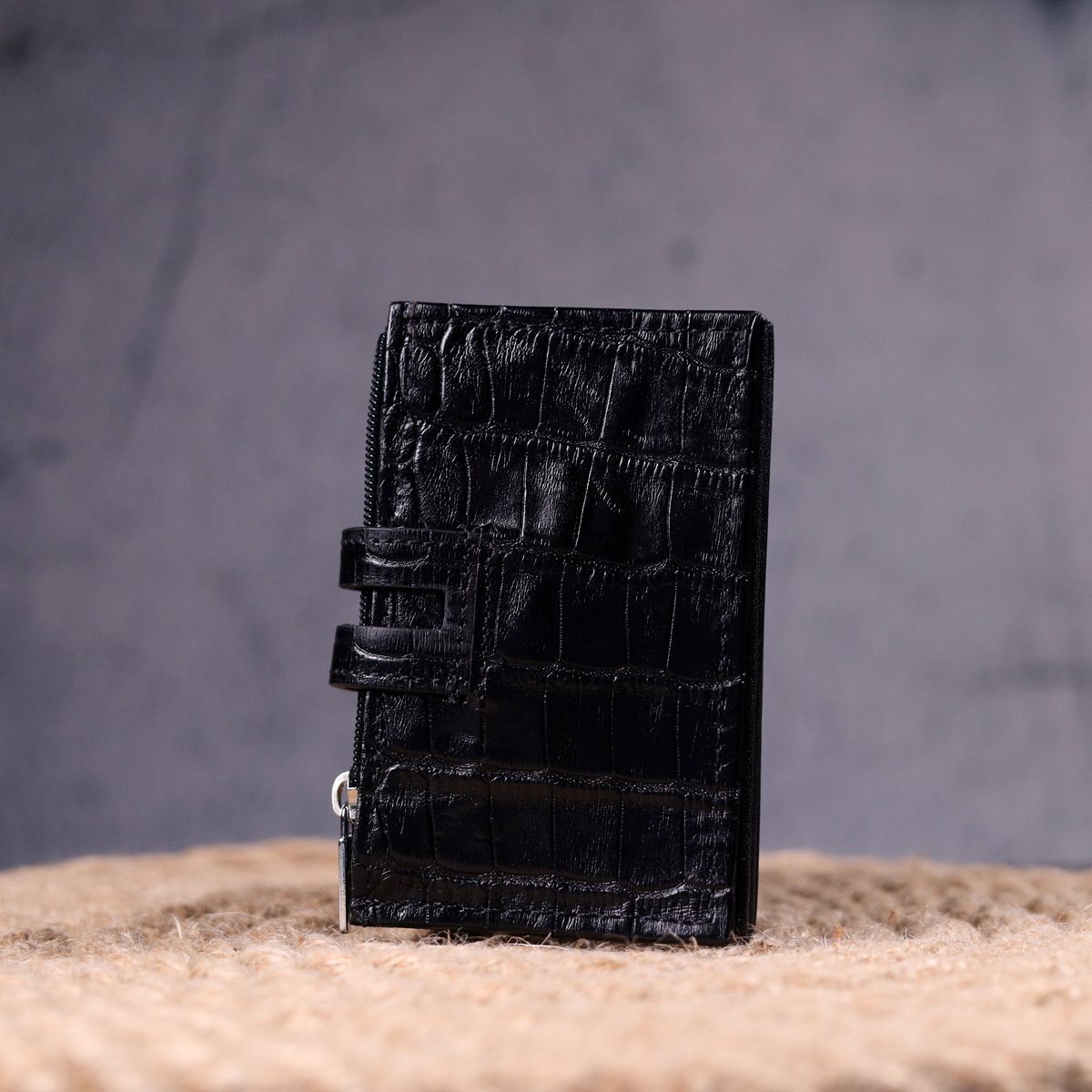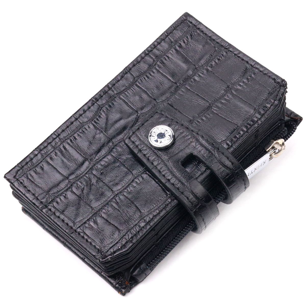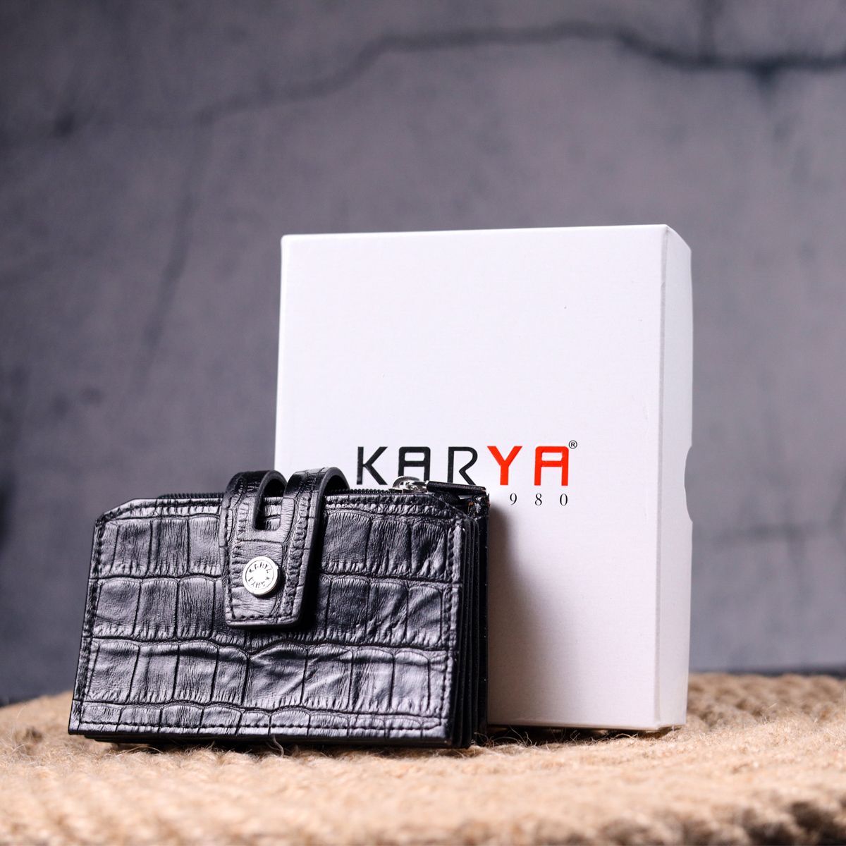 Удобный картхолдер из натуральной кожи с тиснением под крокодила KARYA 21331 черный