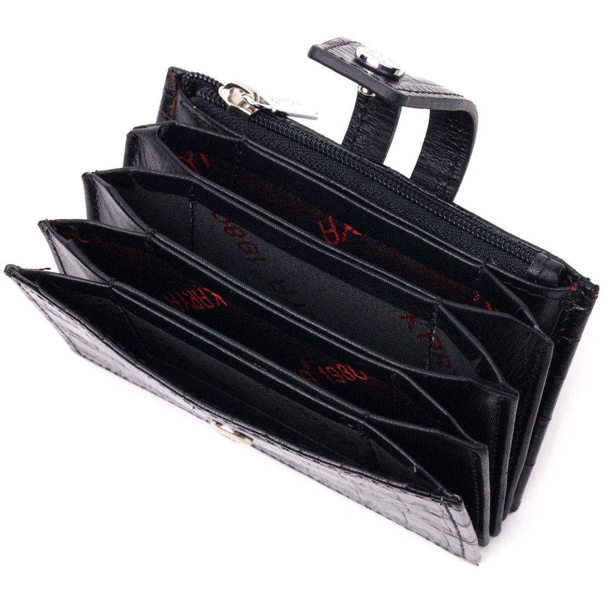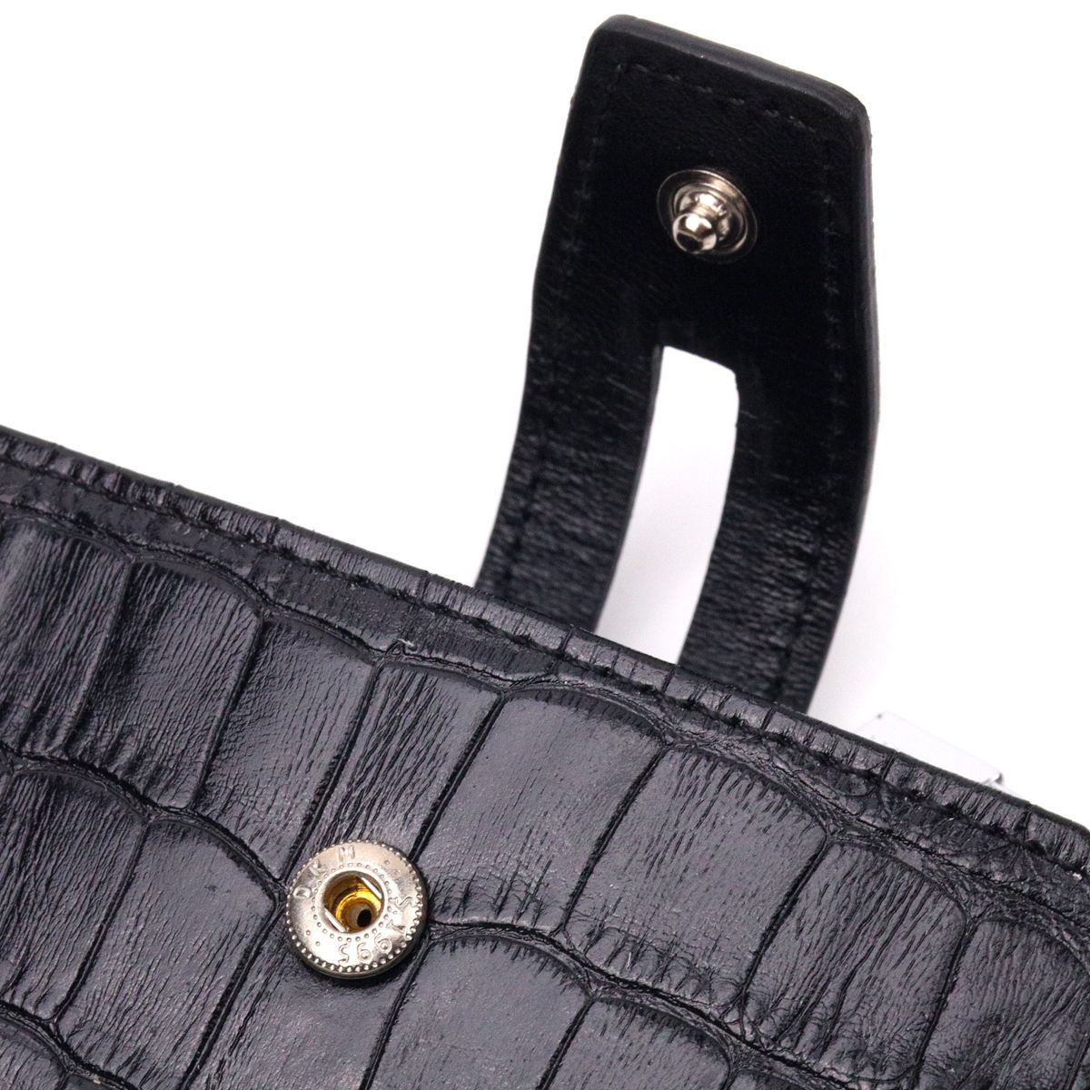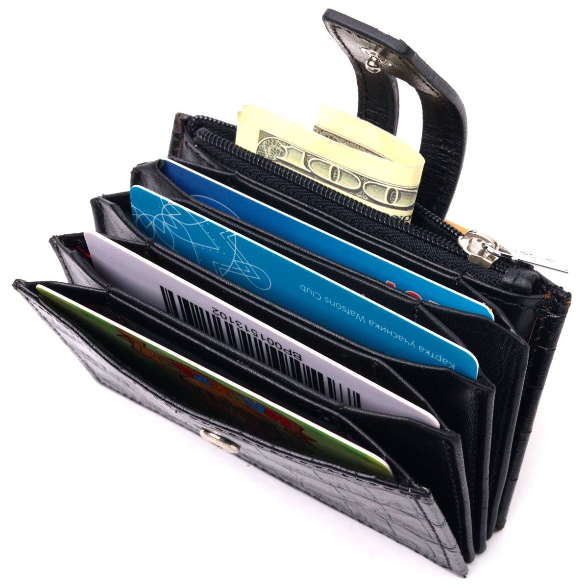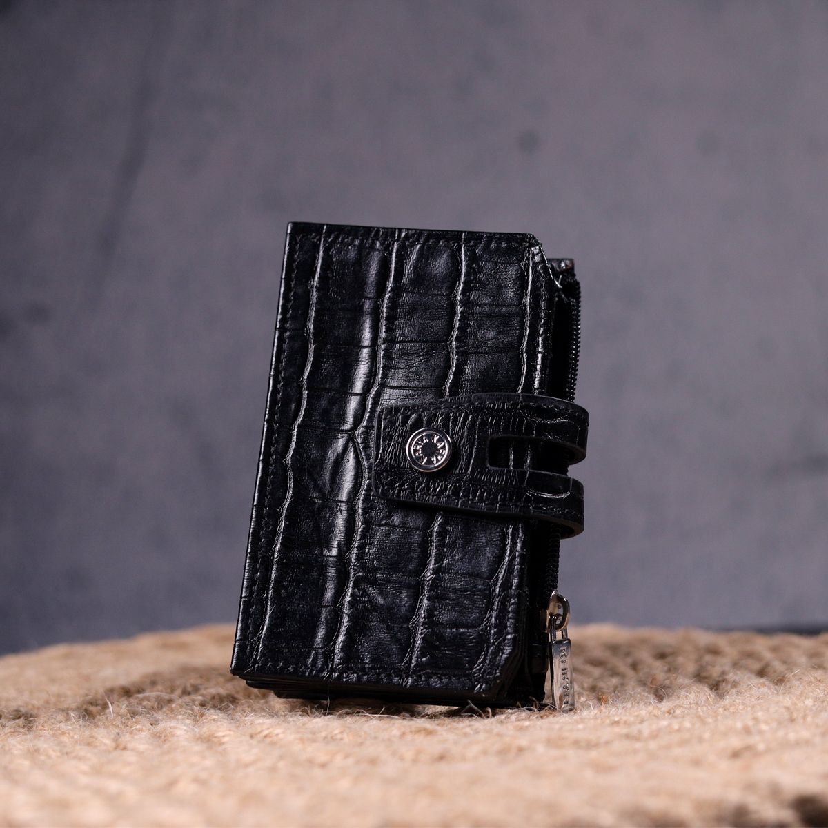 Удобный картхолдер из натуральной кожи с тиснением под крокодила KARYA 21331 черный