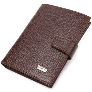 Удобный вертикальный мужской кошелек среднего размера из натуральной кожи Canpellini 21737 коричневый